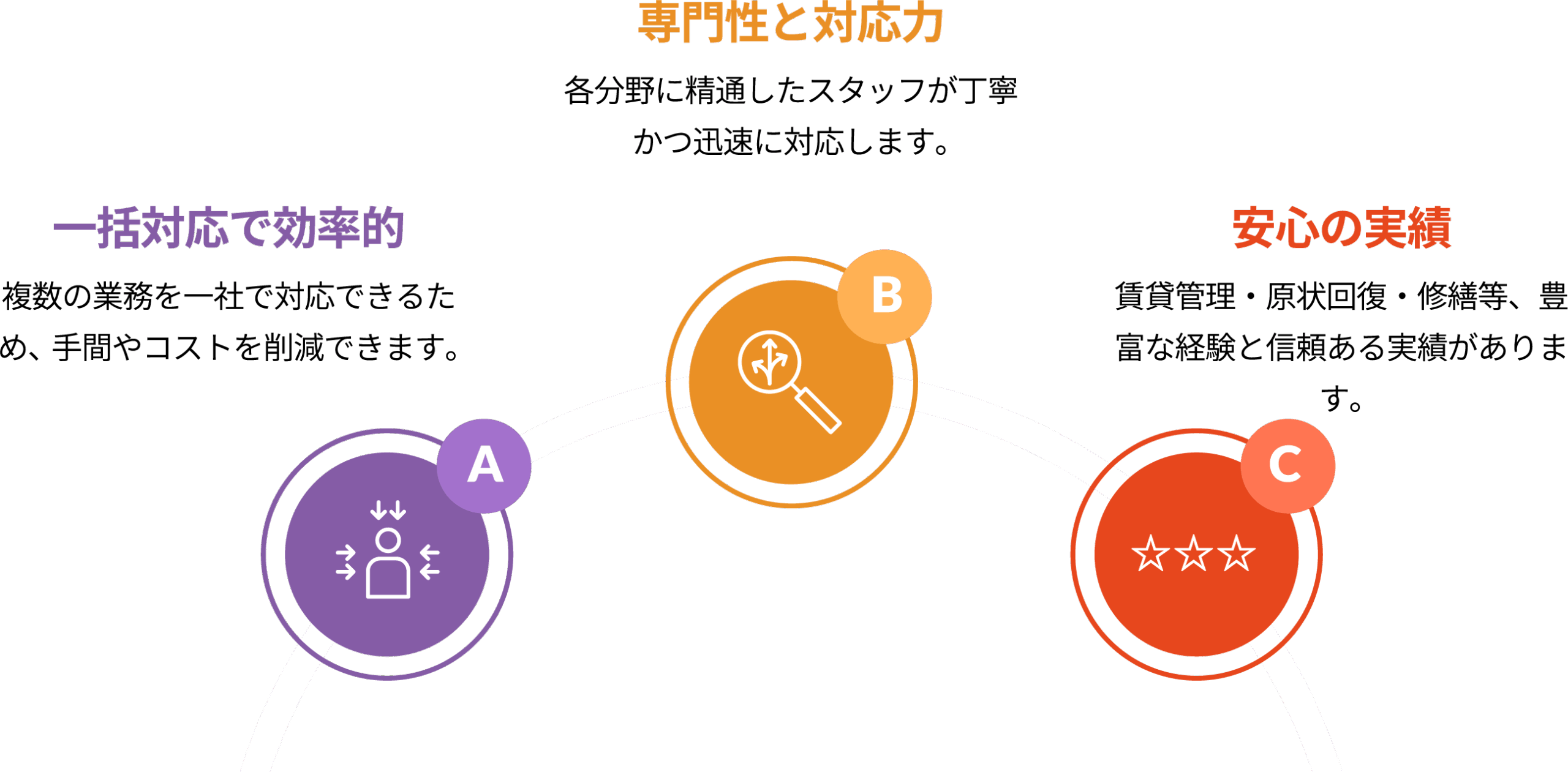 空室リフォーム、不動産管理まで、幅広い業務でオーナー様・管理会社様をサポートする会社です。